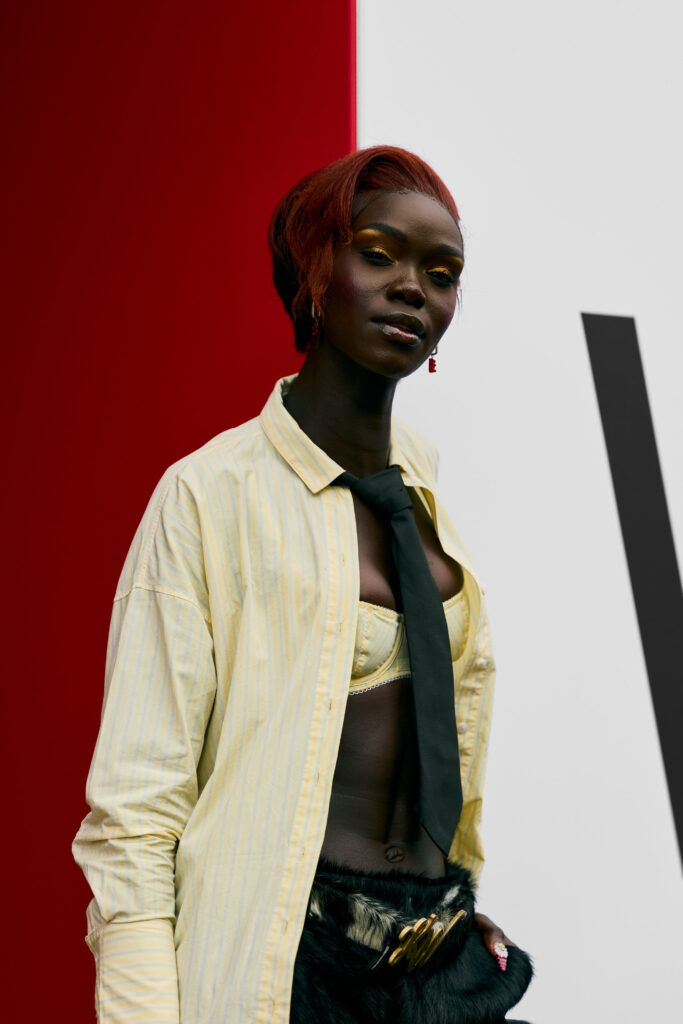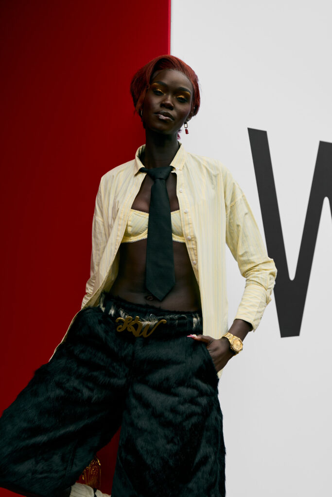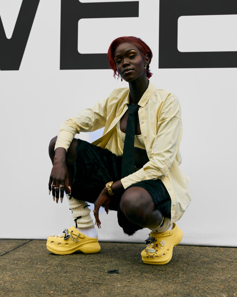 Unice Wani made a colourful appearance at the fashion week with a bright yellow outfit. Without a doubt she’s one of the loveliest people to work with on fashion week. Shorts \ Belt: Kosi Wahala | Top: Lounge | Shoes: Crocs Aus