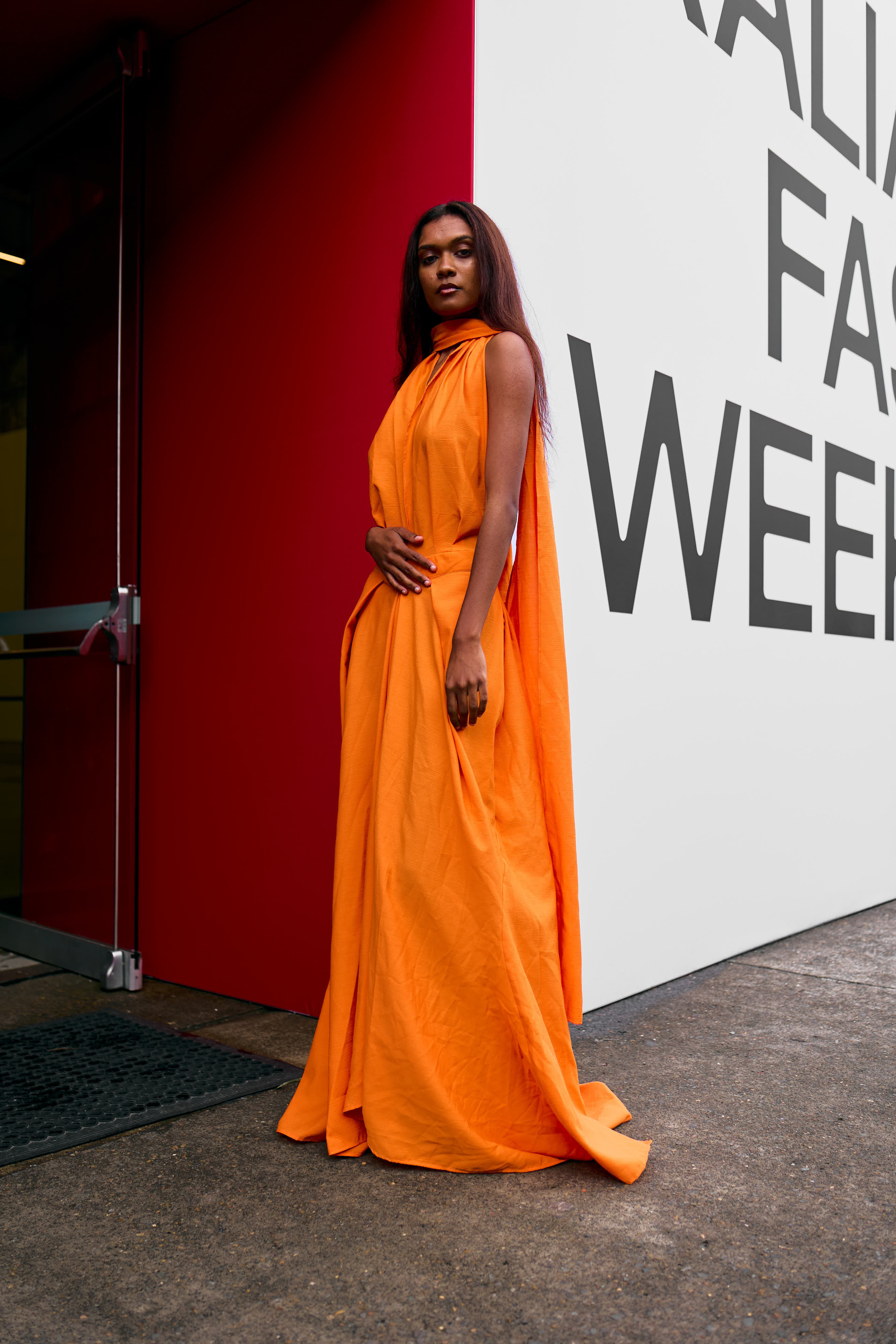 Shamaiah Sullivan with a lovely orange dress from: Notchi. A Perth based designer. Shamaiah was also one of the models for the ‘New Generation’ runway on the Friday morning. (Post will be coming)